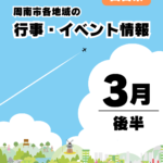 2026年3月15日 / 最終更新日時 : 2026年3月18日 西村尚起 お知らせ 🎎3月後半の行事・イベント情報🎎 周南市の各地域で取り組まれている地域行事や地域のイベントなどをご紹介❗️今回は3月後半に開催される行事やイベントを掲載しています✨お出かけの際にご参照くださいませ🚙 ✅ピックアップ●3/20(金・祝)「キクガ“わ”フリー […]