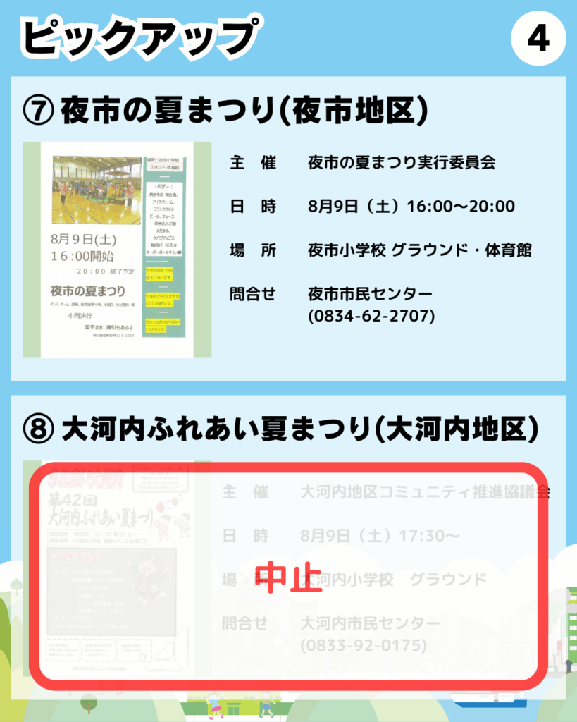 ●8/9(土)「大河内ふれあい夏まつり」(大河内地区)中止