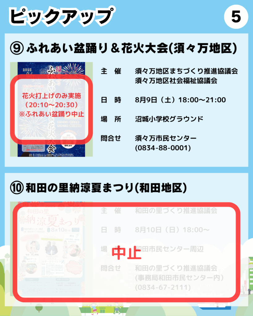 ⚠️各行事・イベントに関する問い合わせは、各主催者様へ直接お問い合わせをお願いします。