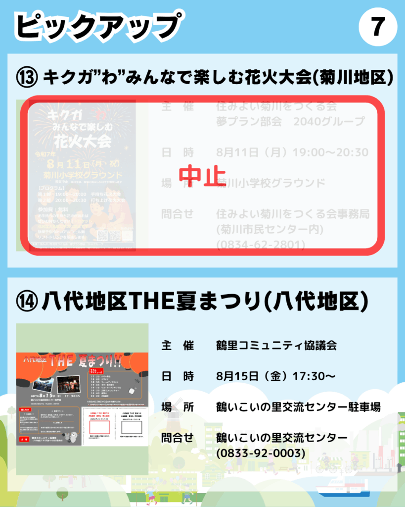 ●8/11(月・祝)「キクガ“わ”みんなで楽しむ花火大会」(菊川地区)中止