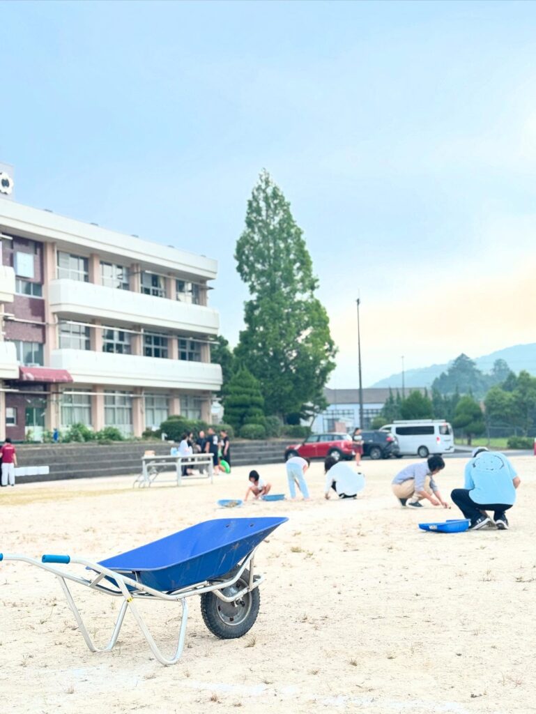 また、残念ながら当日は雨で中止となってしまいましたが、このラジオ体操が行われた数日後には同じ会場で「ふれあい盆踊り&花火大会」が開催される予定だったので、ラジオ体操終了後には草引き作業の呼びかけもあり、早朝とはいえまだまだ涼しいとは言えない時期にもかかわらず、草引き作業に協力される方の姿も多く見られました。