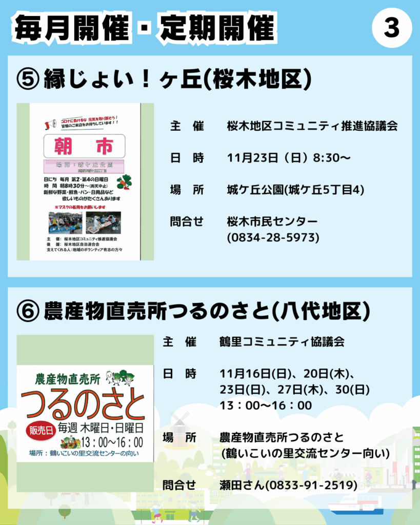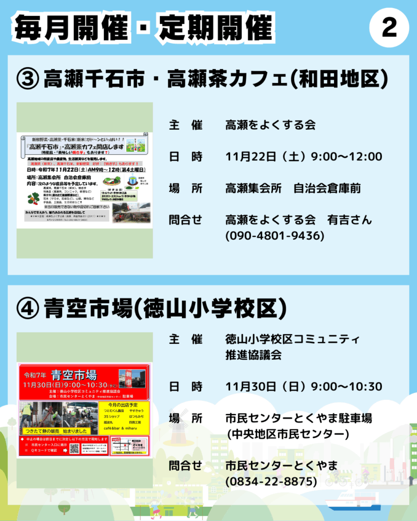 ○11/30「青空市場」(徳山小学校区)※毎月最終日曜日(例外あり)