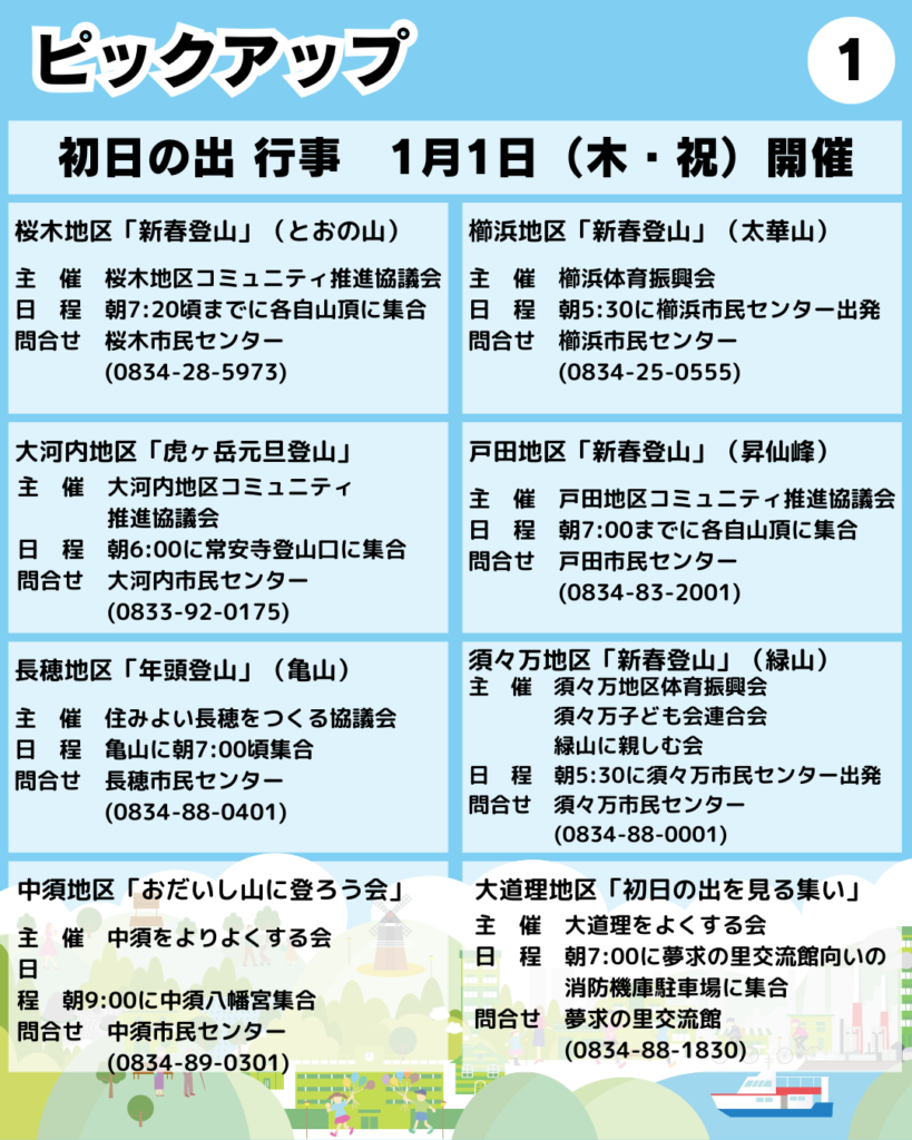 ●1/1(木・祝)「新春登山」(桜木・櫛浜・大河内・戸田・長穂・須々万・中須地区)