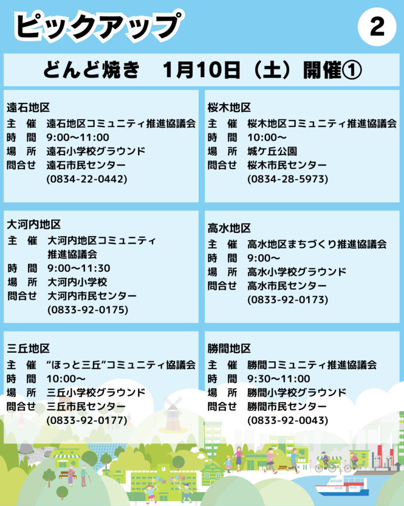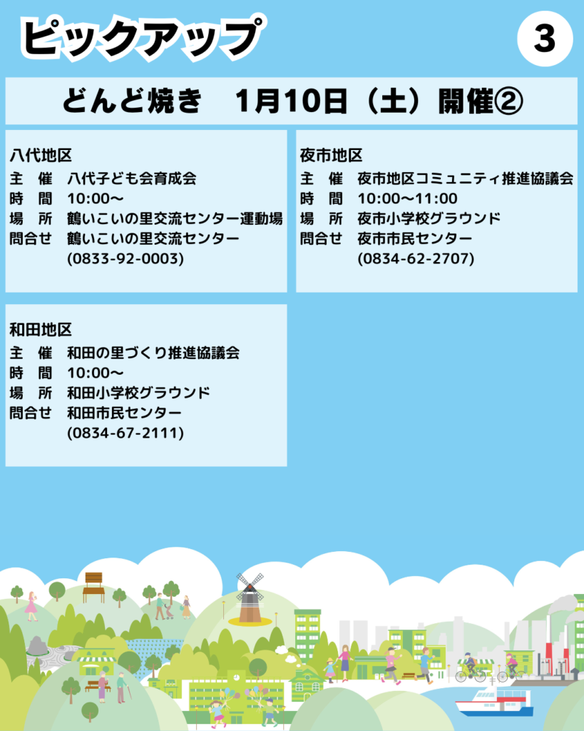 ●1/10(土)「どんど焼き」(遠石・桜木・大河内・高水・三丘・勝間・八代・夜市・和田地区)