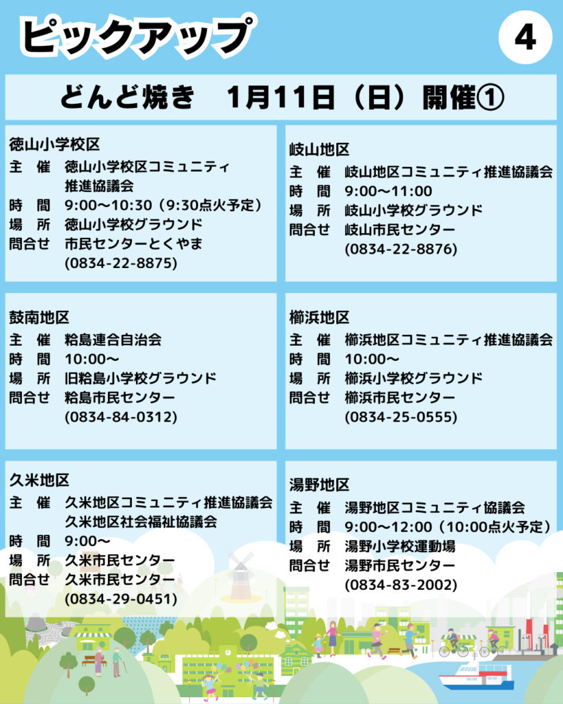 ●1/11(日)「どんど焼き」(徳山小学校区・岐山・鼓南・櫛浜・久米・湯野・戸田・大向・須々万・中須・須金地区)
