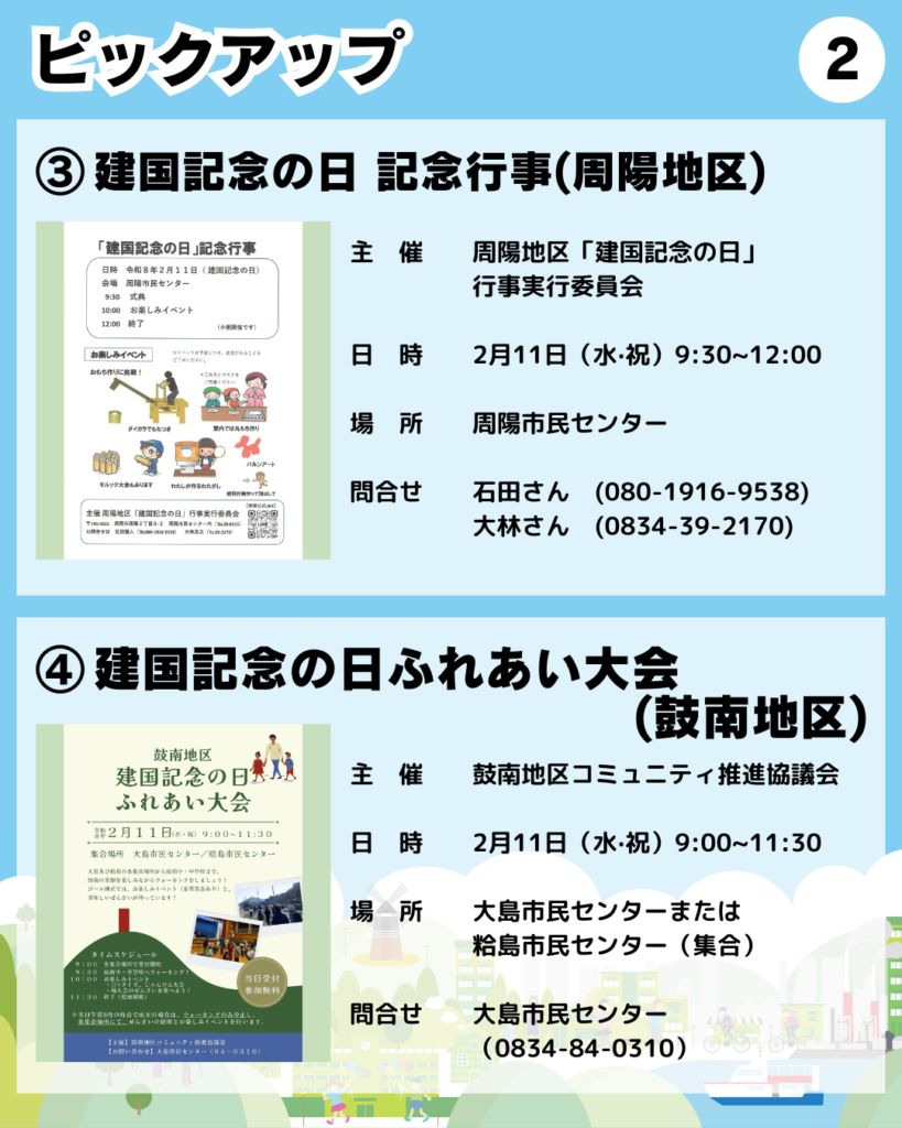 ●2/11(水・祝)「建国記念の日 奉祝行事」(徳山小学校区)