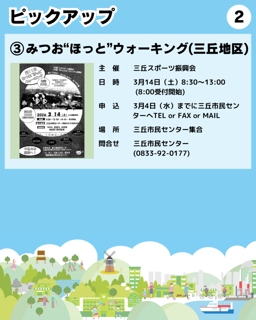 ●3/14(土)「みつお“ほっと”ウォーキング」(三丘地区)