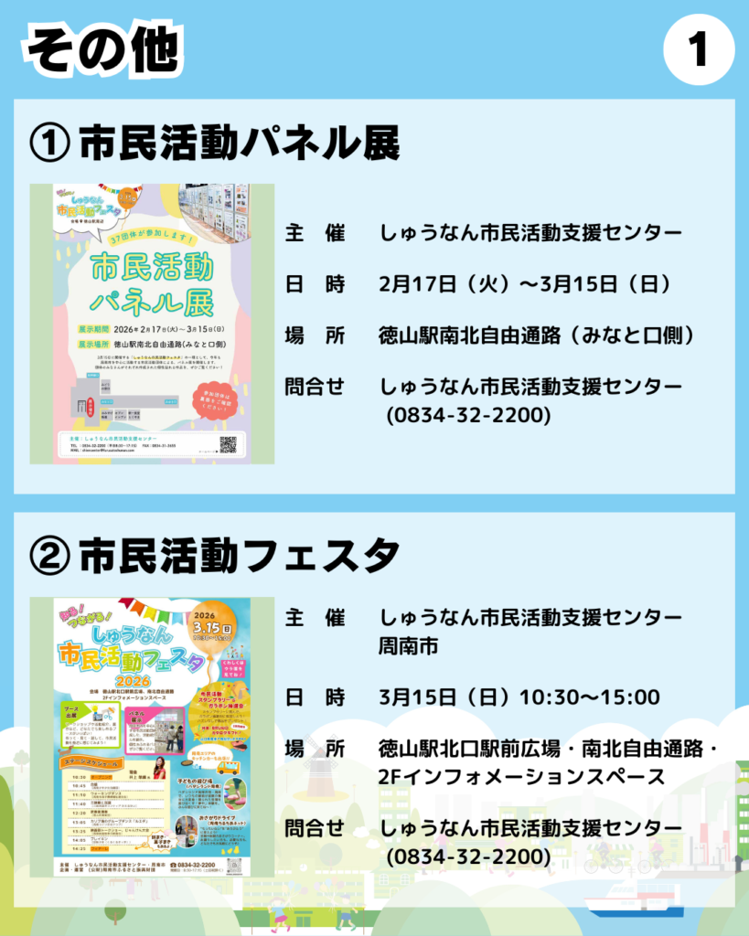 ●2/17(火)~3/15(日)「市民活動パネル展」(しゅうなん市民活動支援センター)