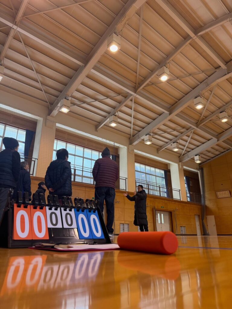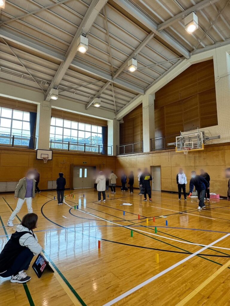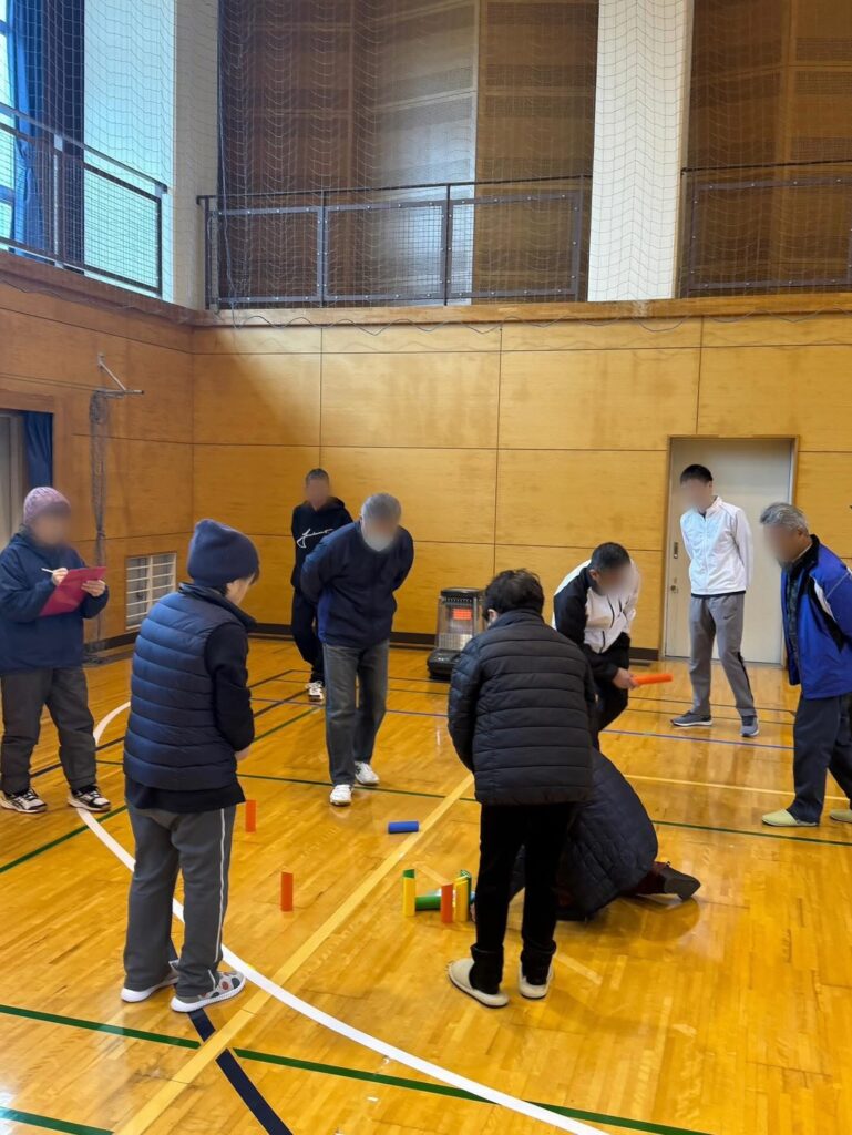 大道理地区ではもともと、建国記念日は地域住民が集まってのウォーキング行事を行っていたのですが…今年はモルック体験に変更し、体育館の中での開催。朝からの小雨の影響もなく、賑やかに開催されました。