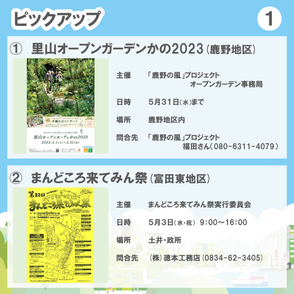 ●開催中~5/31(水)「里山オープンガーデンかの2023」(鹿野地区)