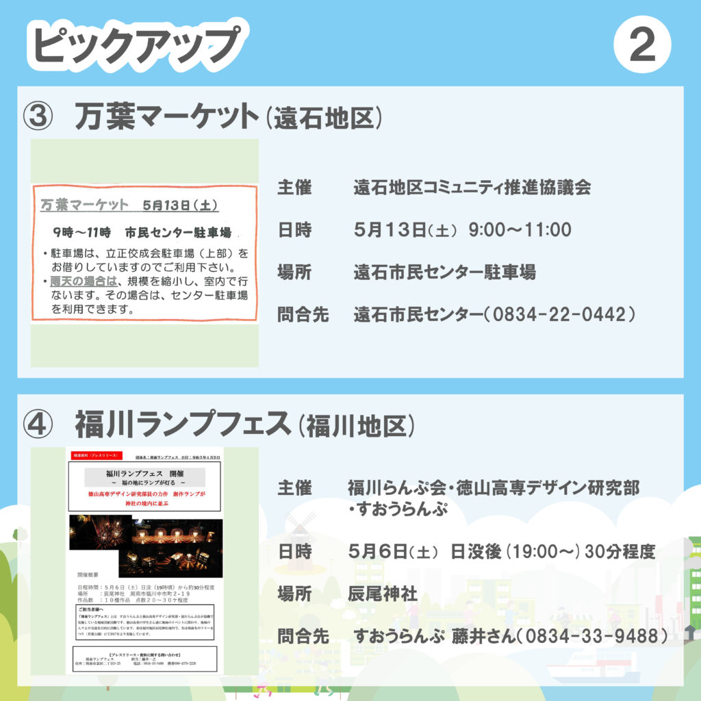 ●5/13(土)「万葉マーケット」(遠石地区)