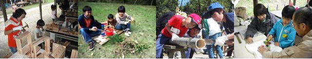 木や竹、自然にある素材を使って自分だけの作品を作ろう。土をこねての陶芸なども。