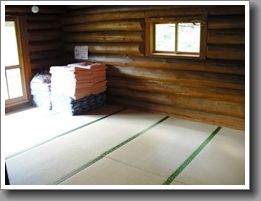 洗心閣一番広いログハウスです。1階に畳で2部屋、2階に板張りで2部屋あります。定員 25人(1階大 7人、小 4人・2階 7人×2部屋)