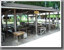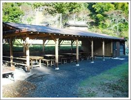 なずな池の横の雨天活動場です。丈夫な机があるので、主にクラフト体験などに使われます。 机が6つあり、48名程度まで活動できます。 |